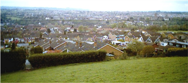 The view today from the ridge looking towards Bridgnorth town. Houses now cover most of the fields. | ||